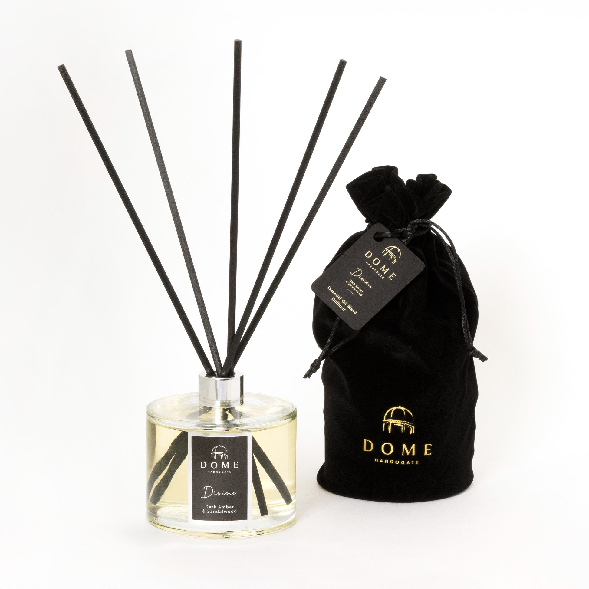 Presented in our gorgeous black velvet Dome bags, our Grand Diffusers are a fabulous statement piece, effortlessly fragrancing your space with your favourite fragrance. Simply pop the extra long black reeds into the bottle and allow the beautiful fragrance to be diffused around the room.