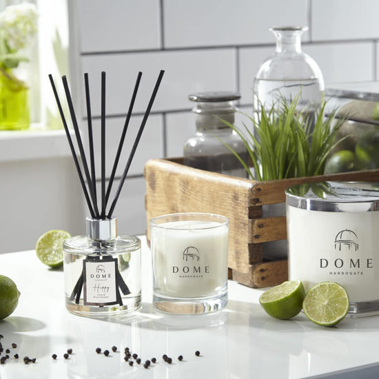 Stimulate your mind and awaken your senses to the fresh and vibrant fragrance of Happy. A perfect fusion of zesty limes and warming black pepper oil carry you to a place of happiness and contentment. This spicy, exciting scent will lift and enhance your happy mood and delight your lovely home. So, revive and shine.