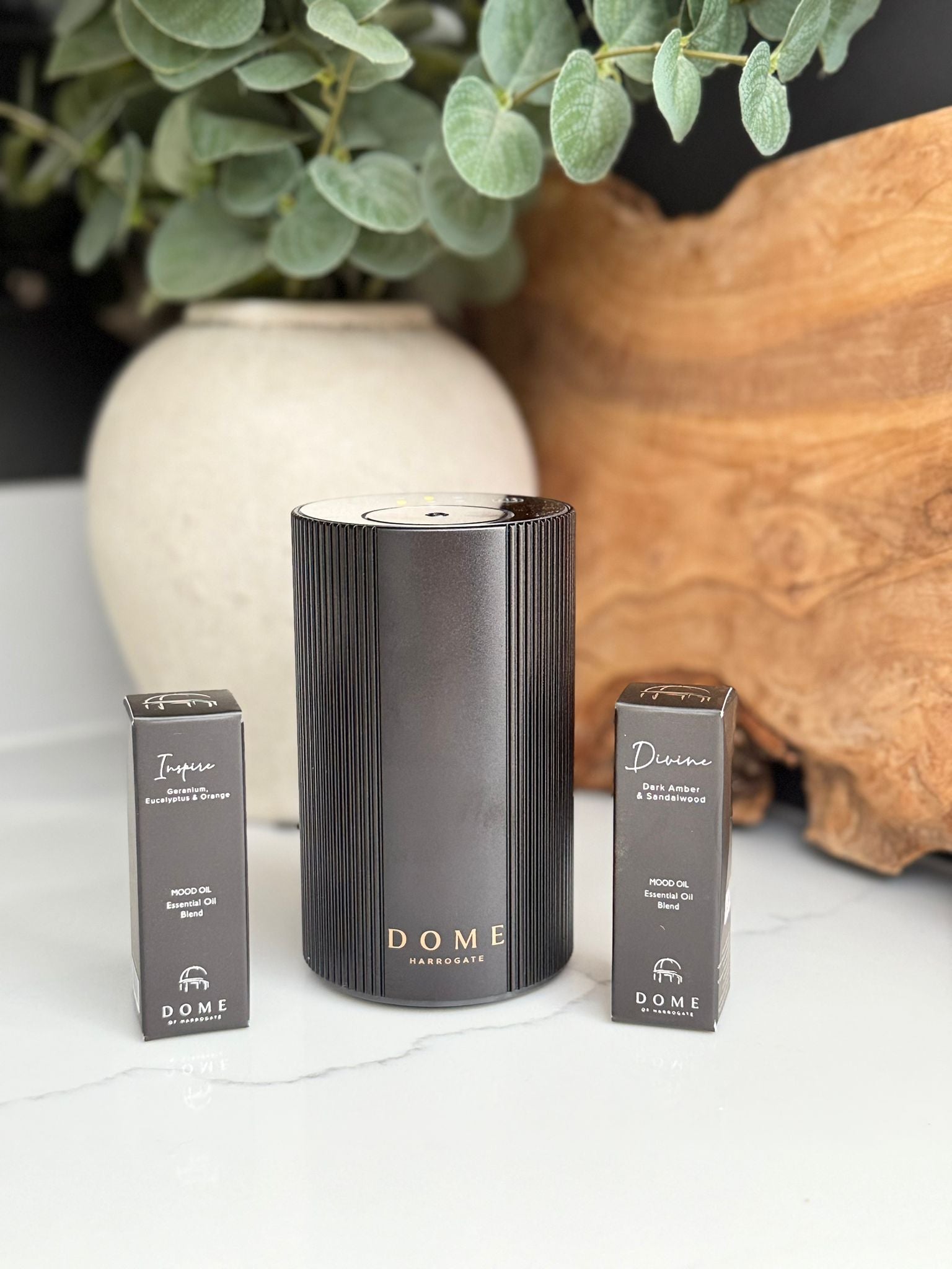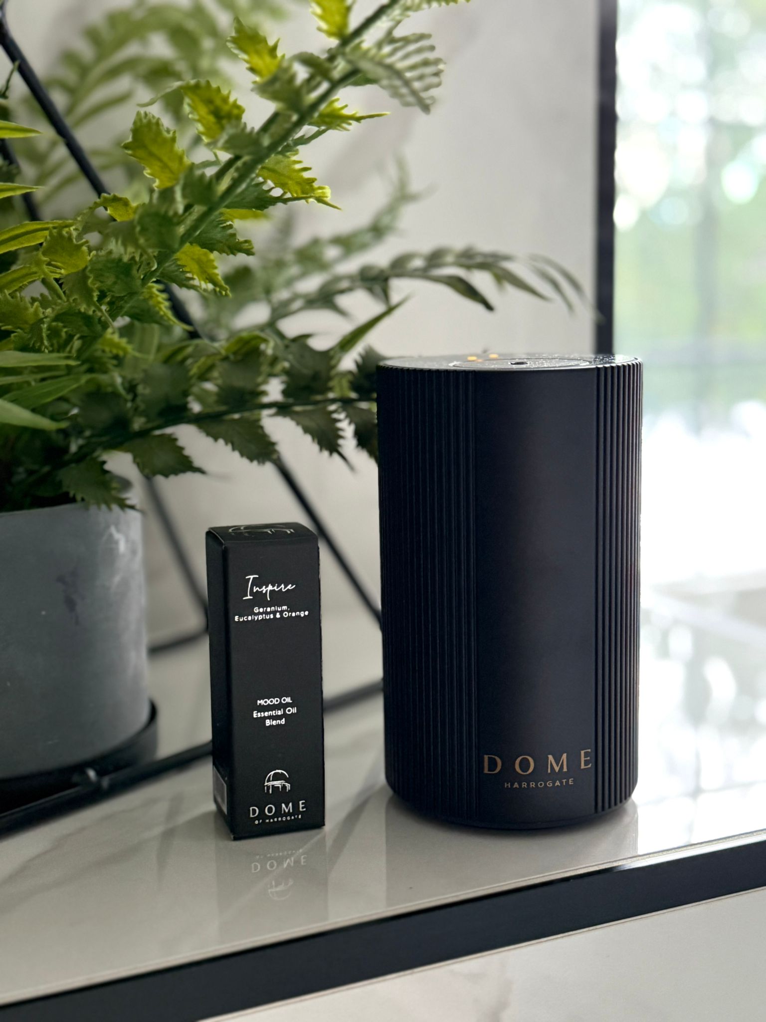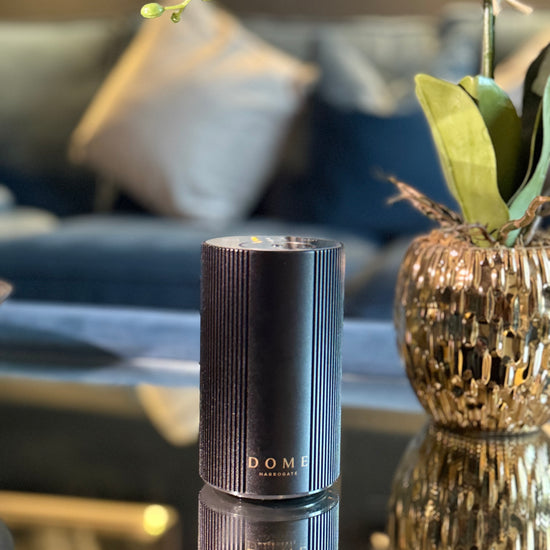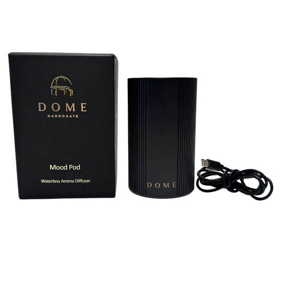 Simply by inserting a Dome Mood Oil into the device, with the press of a button, it will release heatless and completely safe, fine scented mist into the atmosphere, stimulating your senses and enhancing your wellbeing. There are a combination of settings for intermittent to constant flow, to suit your preference. The pod will also automatically switch off when the oil or the battery runs out, making it safe for use around children and pets.